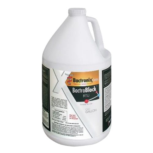 Bactroblock provides antimicrobial protection between disinfecting and sanitizing operations for 30 to 90 days. BactroBlock prevents the growth of a wide range of bacteria, mold, mildew, algae, and yeast. Once applied, it creates a coating of microscopic spikes that pierce the cell walls of microbes providing longlasting antimicrobial protection.
